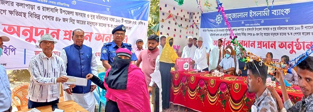 Shahjalal Islami Bank Limited donated Sewing Machines with motor set among the helpless and distressed women of Kalapara and Rangabali upazila of Patuakhali district and provided financial assistance to low income people of different professions